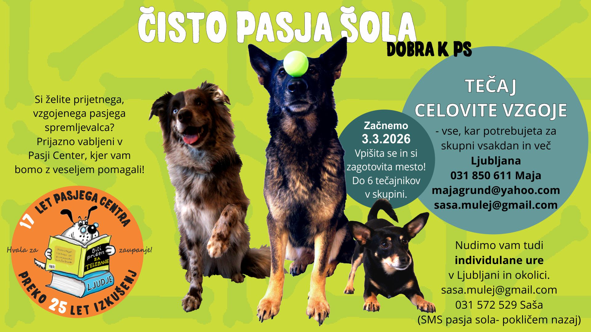 1. Tečaje v Pasjem centru vodi inštruktorica Saša Mulej z več kot 20-letnimi izkušnjami z vodenjem tečajev vzgoje in šolanja psov.
