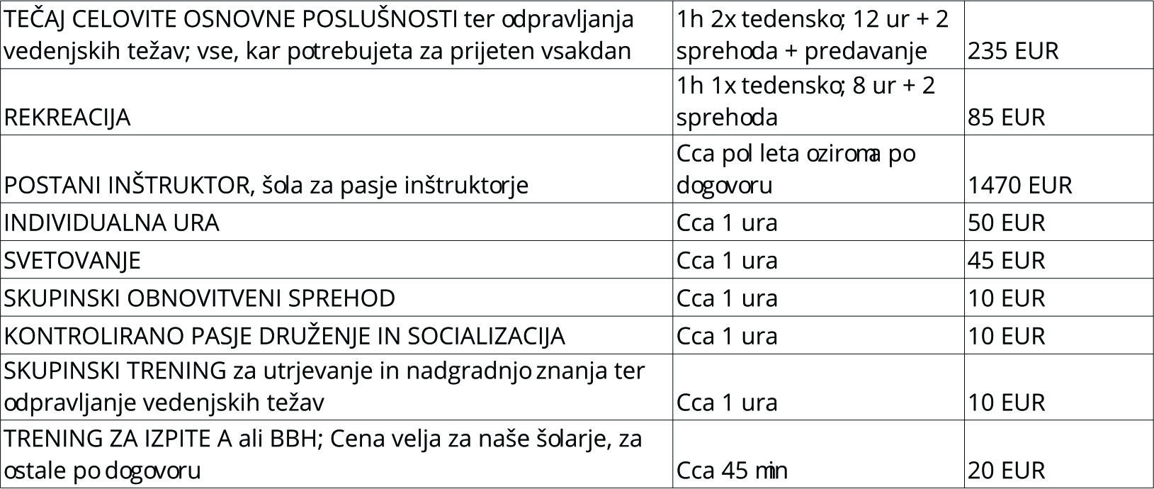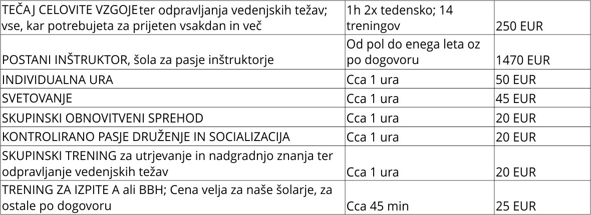 Tečajnina ni prenosljiva na drugega psa ali lastnika, razen po izrecnem dogovoru z inštruktorjem.